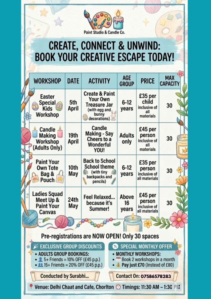 “The candle making workshop was genuinely one of the best afternoons I’ve spent in Manchester. The instructor was warm, knowledgeable, and made us all feel like proper artists!”