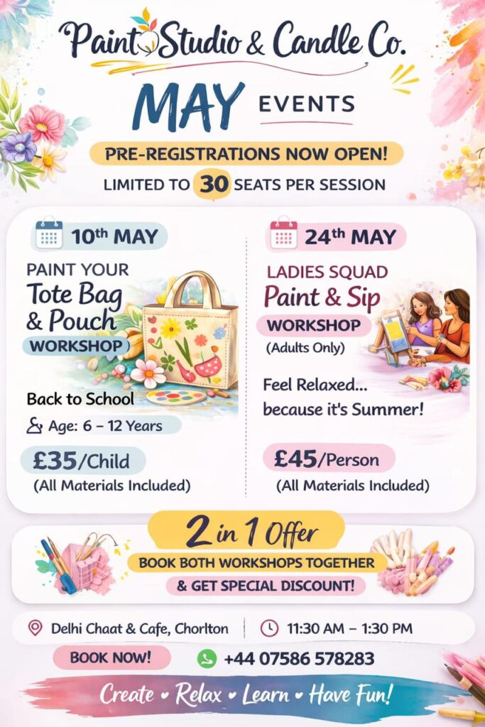 π May Combo β Tote Bag Workshop + Ladies Paint & Sip (20% OFF)